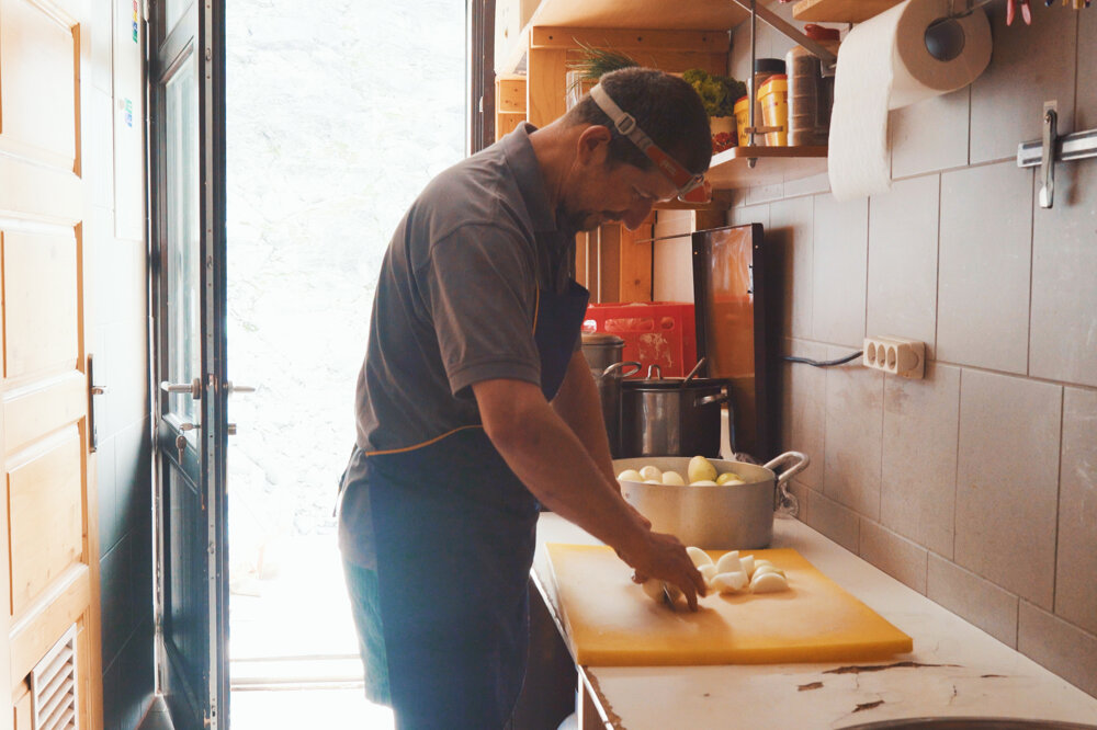Vlado vstával ráno o štvrtej a mal šesť hodín na to, aby sa dostal na horskú chatu. O pol jedenástej už musí mať oblečenú zásteru a variť čerstvú dávku kapustnice. Denne sa pripravuje 100 litrov kapustnice, 25 litrov guláša, 20 litrov cesnačky a vypije 150 litrov čaju.